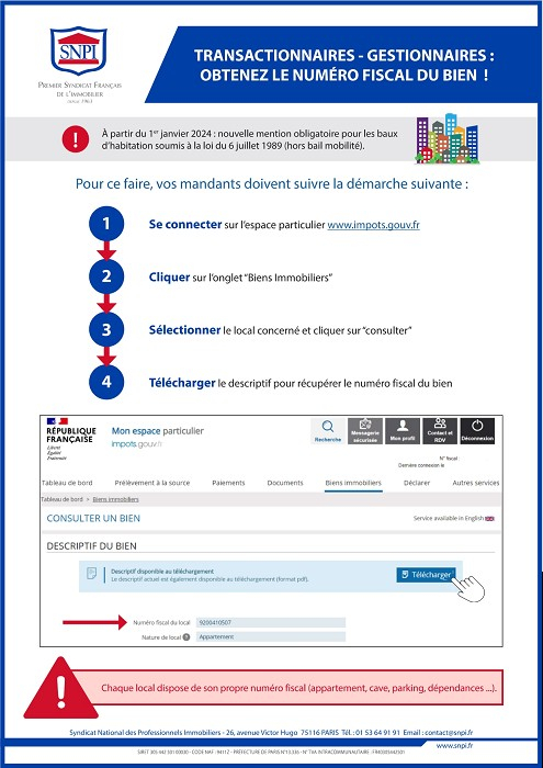 Depuis le 1er janvier 2024, tous les baux soumis à la loi du 6 juillet 1989 (hors bail mobilité) doivent mentionner le numéro fiscal du bien objet de la location.